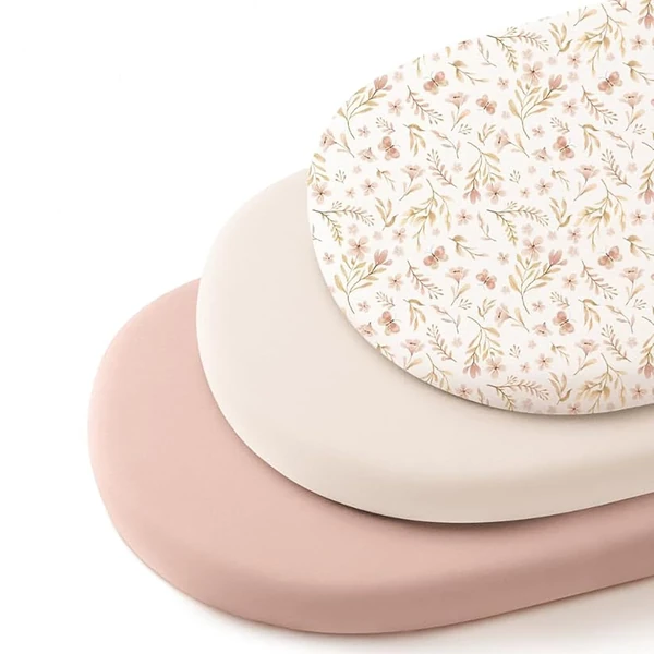 3 Pack Stretchy Bassinet Sheets for Baby Girl Boy, Soft Breathable Baby Bassinet Mattress Sheets Fit for Hourglass Oval Cradle, Moses Basket Rectangle Mattress