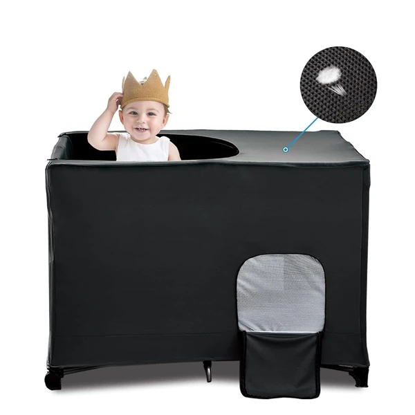 Jonnick Slumber Crib Blackout Canopy Cover for Pack N Play Travel Crib Canopy - Portable Stretchy Breathable Sleeping Pod Shade for Stretchy Netting Cover for Indoor Outdoor Travel Playard (Black)