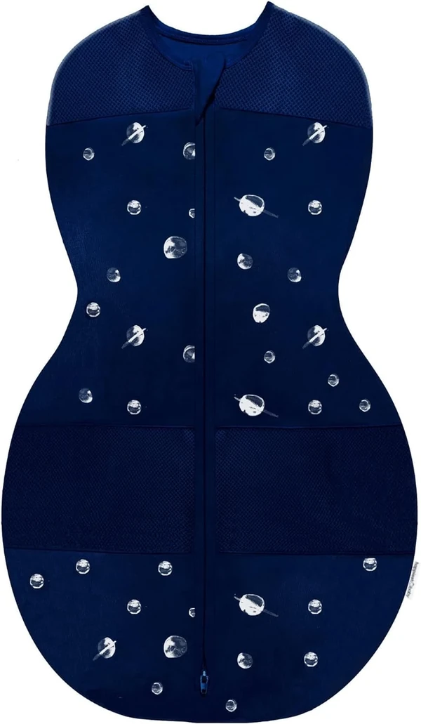 Happiest Baby Sleepea 5-Second Swaddle - 100% Organic Cotton Baby Swaddle Blanket - Doctor Designed Promotes Healthy Hip Development (Midnight Planets, X-Large)