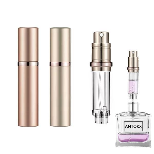 Perfume Travel Spray Bottle Atomizer - 2-Pack 5ML ANTOKX Atomizer Perfume Bottle, Scent Pump Case, Luxury Leakproof Refillable Perfume Spray Bottle for Women and Men (Gold & Rose gold)