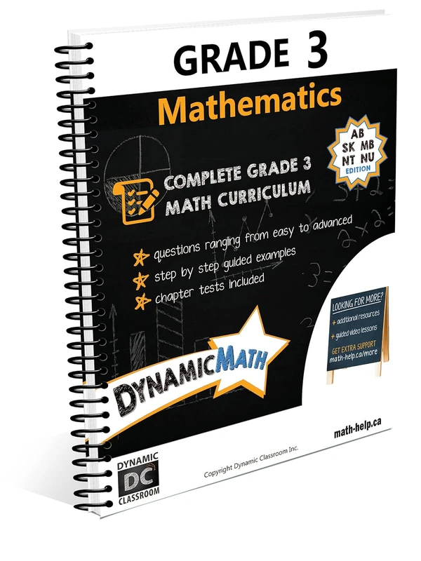The Dynamic Math Workbook Covers the Complete Grade 3 Mathematics Curriculum for SK, MB, NT, NU, Atlantic Canada! Written by teachers, and featuring 100’s of examples and practice questions, this Math workbook and study guide covers the entire year of learning and is perfect for use at school & at home!