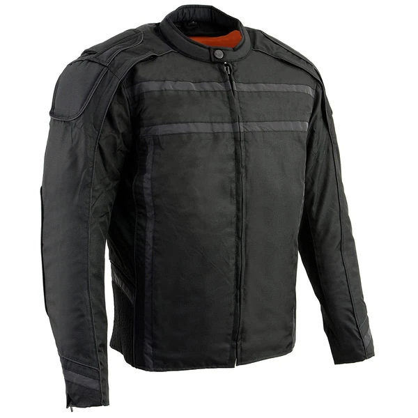 Milwaukee Leather MPM1740 Men's Black Vented Textile Jacket with Reflective Stripes - Medium