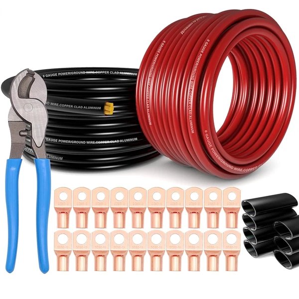 1/0 Gauge Wire(20ft Each - Red/Black) Copper Clad Aluminum CCA - Primary Automotive Wire,Car Amplifier Power & Ground Cable with 10-in Cable Cutter for Car Stereo,Solar, Auto, RV Trailer & Marine