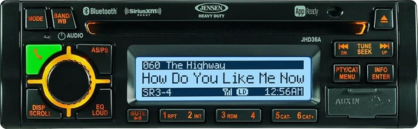 JHD36A AM/FM/WB/CD/RBDS/USB/App Ready/Bluetooth Car Stereo; 12VDC; 30 Sec Electronic Skip Protection; Front and Rear AUX Input; Full Dot Matrix LCD; Amber Backlit Buttons (Renewed)
