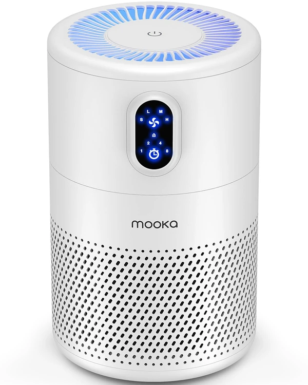 MOOKA Air Purifiers for Home Large Room up to 1076 ft², H13 True HEPA Air Filter Cleaner, Odor Eliminator, Remove Smoke Dust Pollen Pet Dander, Night Light(Available for California)