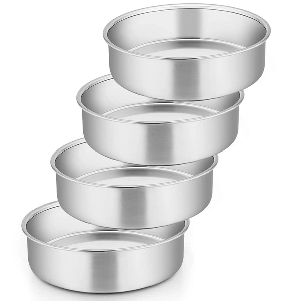 6 Inch Cake Pan Set of 4, E-far Stainless Steel Round Smash Cake Baking Pans, Non-Toxic & Healthy, Mirror Finish & Dishwasher Safe