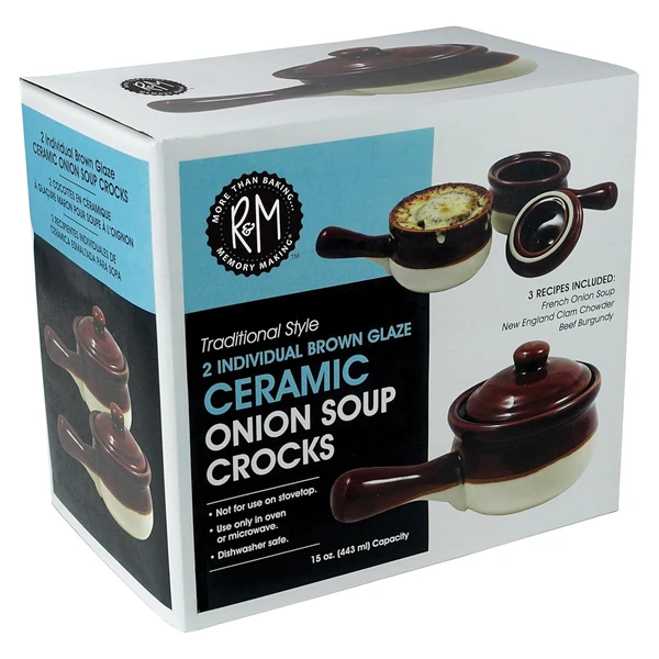 R&M International 7630 Traditional Style Ceramic 15-Ounce French Onion Soup Crocks, Set of 2