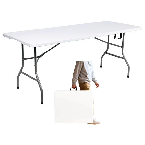 Folding Table 6ft Portable Heavy Duty Plastic Fold-in-Half Utility Foldable Table Plastic Dining Indoor Outdoor for Camping, Picnic and Party, White(27.5" D x70.8" W x29.1" H)