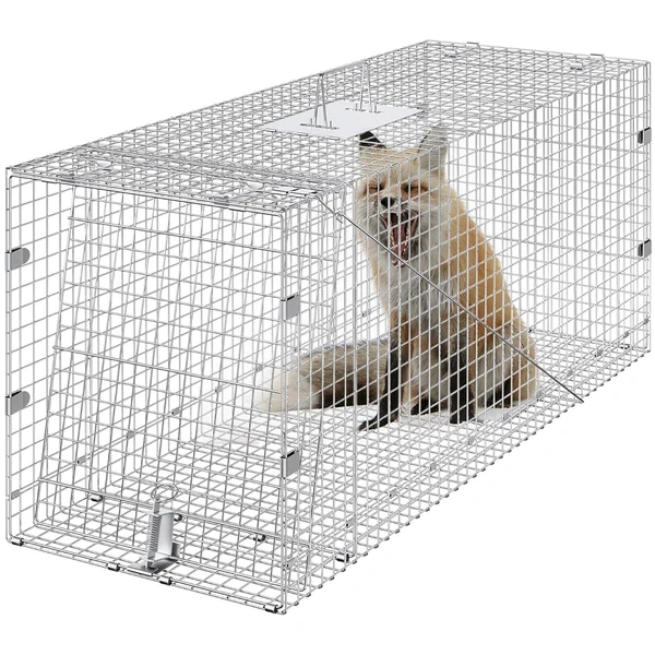 VEVOR Live Animal Cage Trap, 42" x 16" x 18" Humane Cat Trap Galvanized Iron, Folding Animal Trap with Handle for Stray Dogs, Armadillos, Raccoons, Marmots, Foxes