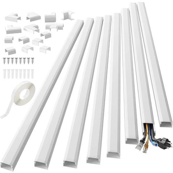 Yecaye 8 Pack Cable Concealer, 125 in Large Size TV Cable Cord Hider, Cable Management for Wires on Wall, Paintable Cable Cord Organizer for Home Office, 8X L15.7 X W1.18 X H0.6 in