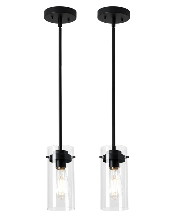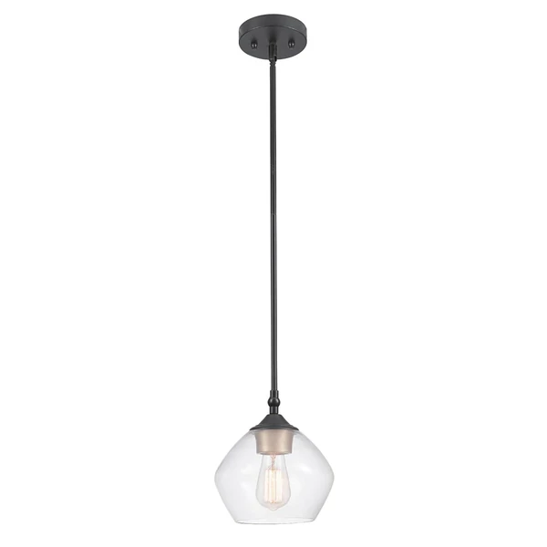 Globe Electric 60312 1-Light Pendant, Matte Black, Gold Accent Socket, Clear Glass, E26 Base Socket, Kitchen Island, Café, Decorative, Ceiling Hanging Light Fixture, Vintage, Home Improvement