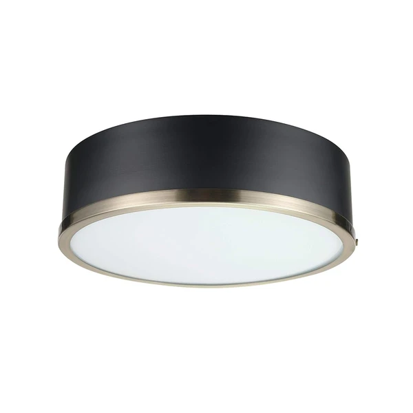 Globe Electric 60309 2-Light Flush Mount Ceiling Light, Matte Black, Antique Brass Accents, Frosted Glass Shade, Ceiling Light Fixture, Light Fixtures Ceiling Mount, E26 Bulb, Home Improvement