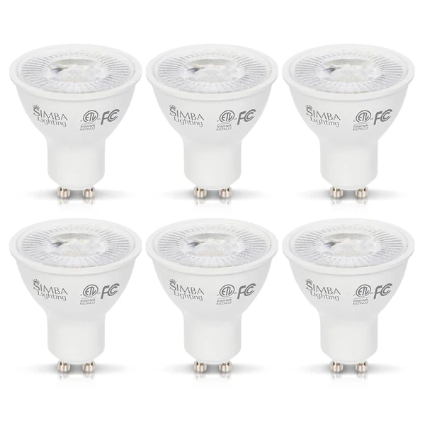 Simba Lighting LED GU10 5W Dimmable Spot Light Bulb (6 Pack) Halogen 50W Replacement MR16 Shape for Accent, Recessed, Track Lighting, 38 degrees Beam Angle, 120V, Twist-N-Lock Bipin Base, 5000K Daylight