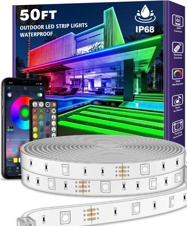 AILBTON 50FT Outdoor LED Strip Lights Waterproof,IP68 Outside Light Strips with App Remote Control,Music Sync RGB Exterior Led Rope Lights,for Balcony,Deck,Roof,Garden,Pool