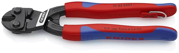 Knipex Tools 71 02 200 T BKA 8" High Leverage Cobolt Cutters, Tether Attachment - Comfort Grip,
