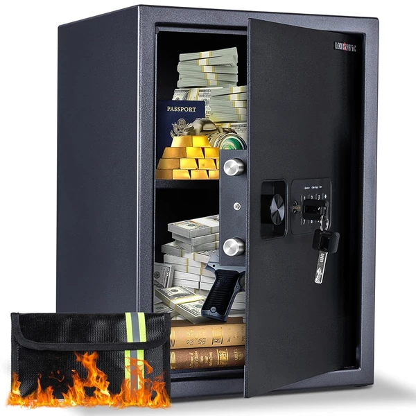 Amazon Basics Steel Security Safe with Programmable Electronic Keypad - Secure Cash, Jewelry, ID Documents, 1.2 Cubic Feet, Black, 16.93" W x 14.57" D x 10.63" H