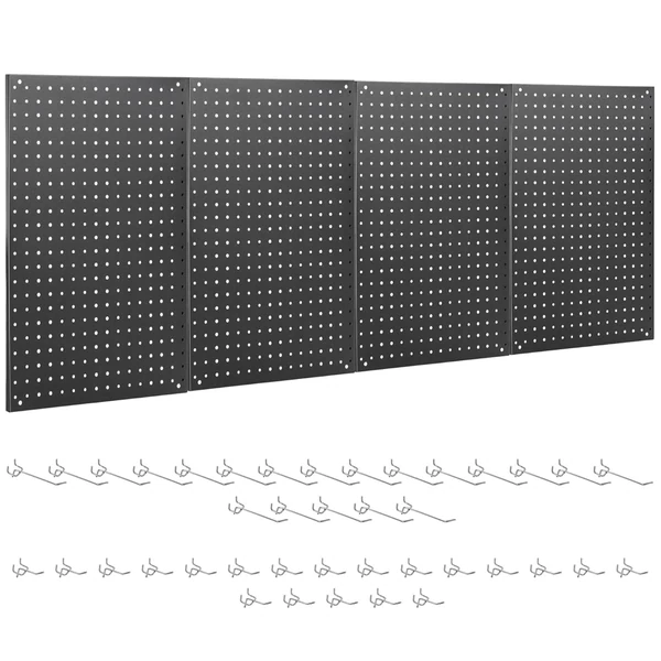 ENJOYWOOD Pegboard, 4 PCS 24"x16" Metal Peg Board Panels Black Modular Wall Organizer Kit with 40 Hooks, Dual-Size Hole Design for Home Tool Storage, Garage Organization, Kitchen, Office, Craft Room