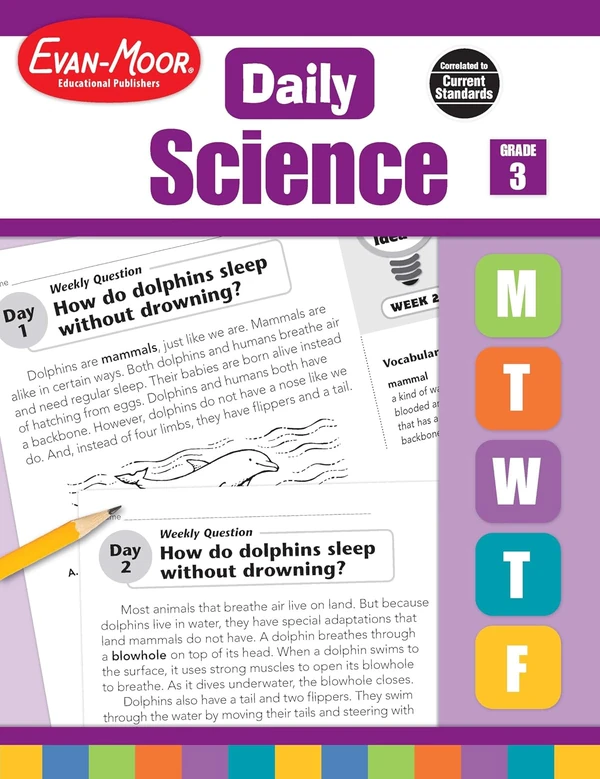Evan-Moor Daily Science, Grade 3 Homeschooling and Classroom Resource Workbook, Printable Worksheets, Teaching Edition, Earth, Life, and Physical Science, Vocabulary, Test Prep, Hands-On Projects